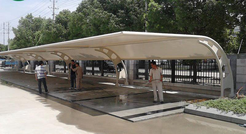 4、墻面附近的膜結(jié)構(gòu)車棚:水電改造也可能會(huì)成為一個(gè)問題,所以墻面中,膜結(jié)構(gòu)設(shè)計(jì)時(shí)盡量避免這方面的麻煩,安裝也提醒安裝人員注意。為什么要提到這一點(diǎn)?因?yàn)槎ㄖ颇そY(jié)構(gòu)車棚的安裝其實(shí)與整體建筑非常像,有時(shí)做基礎(chǔ)預(yù)埋之類會(huì)遇到,如果事先我們都不知道那里有管,那里有線,就會(huì)有打斷線,打爆水管的可能;線比較好接起來,可是水管就很難搞了。